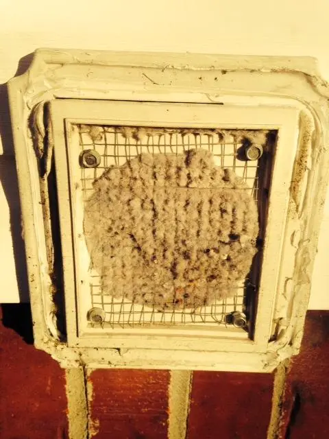 Plus, the clogged vent can also contribute to the same fire hazards as mentioned earlier. Nests also produce a musty, unpleasant smell that backs up into the laundry room, and the resulting fecal matter inside the vent and on the outside wall is…well, let’s just say it’s unpleasant.